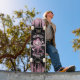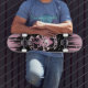 Crânio cor-de-rosa bonito e crossbones com corações e texto FEMININO do CRÂNIO. Este é um skate que bonito toda a menina amará!