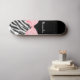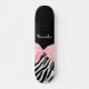 Ponha sua moda na frente com este skate de impressão digital e na moda. Este acessório de moda com uma marca de zebra preto e branco em tendências e uma fita de rosa claro feminina macia amarrada em um arco giro pode ser personalizado adicionando o nome de sua adolescente. Imagem impressa plana, não fita real. Direitos autorais originais de ©ÓSoGirly