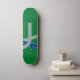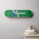 skate com um design com a bandeira de Albany, Oregon. Uma bandeira verde, cinza e azul