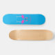 Este skate incrível apresenta uma imagem de arte digital de um par de flamingos bonito cor-de-rosa olhando uns para os outros de forma amorosa. Cada flamingo tem penas rosa brilhantes com pernas cor-de-rosa pálidas e um bico rosa com ponta preta e olhos amarelos com uma pupila preta. Cada um veste um chapéu de Papai Noel vermelho e branco na cabeça. Há bonito texto rosa sobre os flamingos que diz flamingo belles. Um presente de excelente para um casal lésbico no Natal.