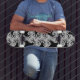 Este skate assombroso foi criado de um fractal. Ele se parece com um aglomerado de árvores negras com troncos negros e galhos tortos contra um céu noturno branco iluminado pela lua. Parece que você está deitado no chão olhando para o céu dentro de uma floresta densa e assustadora. Que sua imaginação corra. Um baralho incrível para mostrar seus últimos truques.