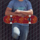 Skate Folhas do ramo da silhueta laranja em vermelho