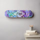 Este skate de padrão de folhas tropicais roxas e douradas brilha em seu nome na caligrafia escrita à mão e nas folhas monstera havaianas que receberam um filtro roxo e azul. Perfeito para o amante da praia! Fotografia das folhas de monstera do Havaí e design © pela TK Goonton e assinada pelo artista, todos os direitos reservados.