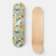 Este convés único apresenta um charmoso motivo de abelha contra um padrão floral floral amarelo e verde vibrante. Perfeito para skatistas que adoram uma mistura de estilo retrô e design inspirado na natureza. Durável e na moda, é um complemento à sua coleção de skates. Prepare-se para andar em estilo com este skate atraente!