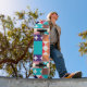 skate geométrico abstrato em cores azul, turquesa, vermelha, preta e laranja.