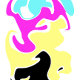 Formas de abstrato mais seta curvada com as mesmas quatro cores de fundo branco. cores modernas de tendência. a seta curvada está 180 graus atrás de você. ela também tem as mesmas cores de abstrato, então branco se misturará com fundo. design unisex