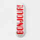 Bonjour escrito em vermelho num skate