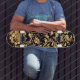 Skate Fusão Elegante: Flores Pretas e Douradas