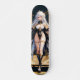 Menina de animação bonita com cabelo prateado vestindo um leotard, armadura de cavaleiro e torresmos de salto alto