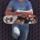 Este skate apresenta um perfil espantoso de uma menina negra branca adornada com rosas vibrantes e borboletas, tudo colocado em um design boho baleado. Perfeito para aqueles que amam um talento artístico único com um toque de beleza da natureza.