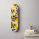 Skate Girassol amarelo roxo de madeira branco rústico do