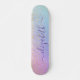 skate feminino personalizado apresentando um confete brilhante de ouro esparso contra um fundo cor-de-rosa, roxo, azul e verde pastel unicórnio. Adicione seu primeiro nome em um script roxo de tendência de na moda com alternâncias.