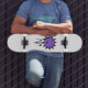 Este skate incrível apresenta um desenho de um mau floral com pétalas pretas e folhas pretas murchas e um rosto roxo com olhos vermelhos demoníacos e uma scowl sinistra. O design é uma mistura de kawaii e estilos góticos e é ideal para o Halloween ou pessoas que gostam de algo um pouco diferente.