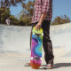 Este tipo de padrão de superfície de skate está pronto para o seu toque pessoal. Design é um padrão ousado e girado de todas as cores em um arco-íris tingido e ranzinza. Basta editar seu nome ou outro texto e escolher suas outras opções apenas para o baralho ou conselho e tamanho completos no menu suspenso.