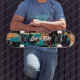 Este skate de skate combina um motif de crânio gelado com traçados de abstrato inspirados no grafite e o lema "Live to Ride". Perfeito para skatistas com um espírito rebelde, este design de alta energia funde arte de rua com elementos de pop para um olhar único e ousado.