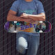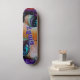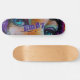 Um grafite colorido em uma parede de tijolos retrata uma garota bonito com olhos azuis. Este skate chamará a atenção de qualquer um! Personalize o baralho com seu nome para lhe dar um toque exclusivo.