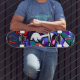 Retro o grafite do trabalho de arte do estilo 80s em skateboards.