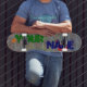 Uma parede de tijolo com uma imagem dos grafites e do texto customizável para adicionar seu nome ou dizer favorito.