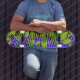 Green leaves float among colorful flowing lines, creating a sense of rhythm, energy, and freedom.