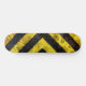 Preto apontador para cima e amarelo em faixas de construção sobre fundo de metal sujo
