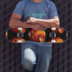 Crânio assustador e assustador do Halloween e Jack O'Lantern Pumpkin no fundo negro. Design Copyright BluedarkArt.