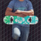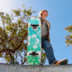 Este design tropical inspirado no Havaí apresenta silhuetas brancas de Hibiscus sobre um fundo azul e verde.