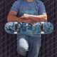 Um design de skate jovem com uma bela e azul teta de gelo e texto angustiante e provocativo da "era do gelo".