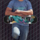 Uma ilustração inspirada na arte de rua apresentando um astronauta no espaço tecno. O universo do som é seu meio-cano e pode ser seu também. Basta adicionar seu nome ao skate e ir se mexer. Também faz um presente de excelente para uma garota ou um garoto de skater.