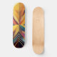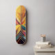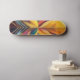 Um conjunto vibrante de formas ousadas e geométricas converge no centro, formando uma composição simétrica e colorida. A peça usa uma variedade de matizes, que vão de amarelos quentes e laranjas a legal blues e roxas.
