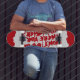 Isso é inspirado pela cena do IT Chapter 2 quando Pennywise deixa uma mensagem para Bill no skate do garoto. Como outras visões, notei que há um padrão desbotado no baralho do tapete Luminoso, então adicionei isso a essa criação. Também inspirado pelo convés de skate da POP da Penywise Funko.