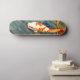 Pintura de um peixe koi laranja, amarelo e branco e de uma trabalho de arte japonesa de erva azul-marinho.