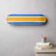 Listras brancas e ouros finas esportivas destacam uma larga faixa central amarela ouro brilhante. As listras azuis brilhantes adjacentes completam a composição.