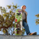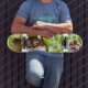 Pintura original das belas artes de um gato do jardim por Carolyn McFann do estúdio de ronrom de dois gatos em um skate da qualidade.