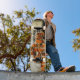 Skate Legal muro de tijolos laranja branco