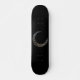 Uma lua de lua de prata brilhante num design de nó celta num fundo preto.