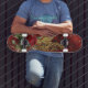 O skate de marca Dd fez uma pescada de Gótico angustiada com gráficos de penas de brilho dourado e rosas vermelhos e brancos. Personalize para adicionar seu próprio texto.