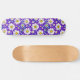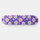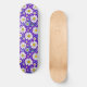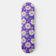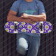 Um padrão contínuo colorido apresentando margaridas com centros amarelos, folhas azuis e um fundo roxo vibrante. Perfeito para temas de primavera, designs de tecidos e artesanatos digitais ou impressos alegres.