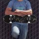 Um skate de mármore preto pitch impressionante! Este é um padrão de mármore preto, dourado, bege, branco e laranja-avermelhado.