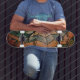 Este as máscaras originais do verde e da imagem retro do pêssego de um srt do cobweb da viga são produzidas de minha pintura do lápis da aguarela. Esta imagem é uma seção tomada de uma fotografia de minha pintura verde da senhora. A pintura começou como um tipo de doodle e transforma então em uma parte pequena de trabalhos artísticos originais. Eu penso este design do abstrato do estilo da arte da rua está realmente para fora nesta plataforma original e eu sou certo que estará amada por todos que gosta do estilo art. da arte do treet dos originais. O texto nesta plataforma do skate do uniue é customizável. Esta imagem colorida foi aumentada digital para dar-lhe um efeito cartooned.