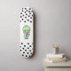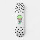 A menina pequena bonito do cientista mostra a todos que a ciência pode ser divertimento! se você é um cientista ou você quer trabalhar em um laboratório quando você cresce acima então este é apenas perfeito para você! igualmente faria uma grande adição a uma sala de aula da ciência! Skate com fundo branco e bolinhas pretas nas extremidades. No meio é uma menina pequena bonito do cientista dos desenhos animados dos cabelos verdes que guardara uma taça e que veste um casaco do laboratório.