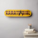 Texto vermelho brilhante e uma menina do karaté na pose. T-shirt, camisolas, canecas, posters, skates, e outros presentes para a mulher das artes marciais de todos os níveis. Engrenagem colorida para o instrutor, o estudante, o cinturão negro, ou o fã do karaté.