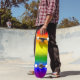 This modern rainbow spectrum design brings a burst of color to the street, blending smooth transitions between red, orange, yellow, green, blue, and purple. A graceful script name gives it a polished, stylish look that feels both playful and chic. Customize the name to create a unique skateboard that’s perfect for showing off your pride on the streets or skate park.