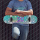 Skate Monograma cintilante azul-azul-unicórnio, iridesce