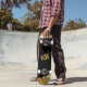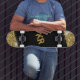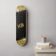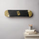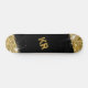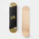 Skateboard Personalizada para Largura Preta e Dourada com duas iniciais de monograma impressas por medida personalizadas, personalizadas, com um trabalho de arte impresso a negrito falso, com brilho perfeito como decoração de parede, manutenção ou skate de design feminino para uso no parque.