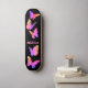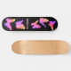 Um skate colorido com borboletas rosa lindas e brilhantes sobre um fundo preto com um nome em rosa, que pode ser alterado a partir do menu Personalizar.