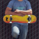 Pegue um pouco de ar e flutue como uma abelha com este moderno baralho urbano amarelo e laranja. Arte do estilo da rua com padrão de mel. Monograma com suas iniciais de letras em uma fonte de tipo granulado. Seja um surfista de calçada, um cavaleiro de rua ou um cano-meio, você se destacará com seu conselho único.