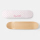Crie seu próprio padrão personalizado, personalizado, moderno, legal, na moda, giro, rosa claro e cheques brancos checando padrão geométrico do tabuleiro de xadrez, script elegante de tipografia rosa-escura elegante, competição de mapeamento de duro-rocha em forma de skate. Para personalizar, basta digitar seu nome / monograma / iniciais. Ao adicionar / design, você poderá ver uma prévia da sua criação ao longo do tempo. Um legal baralho de skate, faz um presente personalizado de excelente para aniversário, graduação, natal, feriados, anos novos e muito mais, para seus entes queridos, crianças, filha, irmã, família e amigos.