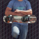 Guitar Montage: uma representação por abstrato com inúmeras guitarras elétricas, incluindo uma variedade de guitarras coloridas sobre um fundo abstrato, alinhadas verticalmente.