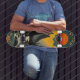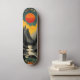 Mergulhe na beleza serena de um pôr do sol da montanha com este design de skate inspirado no século médio. Apresentando pinheiros estilizados, picos rochosos e um rio fluindo sob um sol laranja radiante, esse conselho traz à vida uma estética nostálgica do poster de viagens. Os tons ousados, cor de laranja queimada e carvão capturam o espírito aventureiro da arte poster clássica dos anos 50, perfeito para skatistas que amam o estilo de colheita e paisagens cênicas.