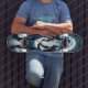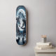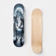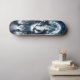 Este design de skate captura um duelo feroz entre dois guerreiros samurai sob a luz da lua, seus katanas batendo em um combate intenso. O luar lança sombras dramáticas, destacando os detalhes de sua armadura e expressões de foco e determinação. O cenário inclui pistas de um tradicional jardim ou templo japonês, acrescentando profundidade e contexto. O esquema de cor humorística e atmosférica, com tons de prata, preto e azul escuro, enfatiza a tensão e a beleza do duelo samurai, incorporando a essência do combate samurai.